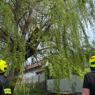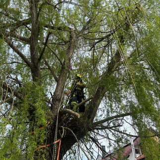 Am 19. April wurden wir zu einem technischen Einsatz gerufen, weil ein großer Baum auf ein Nachbarhaus zu stürzen drohte.